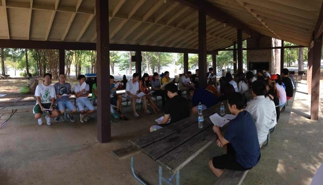 九月份,弟兄姊妹在奥本旁边Lake Martin,举办了一次户外烧烤相调,奥本一共有十几位在职和学生圣徒,个个都积极邀约周围的朋友和同学,最后竟有将近50位参加了这个户外相调,主扩大弟兄姊妹的度量,学生圣徒也在繁忙的学习中拿出时间,不怕辛劳,为主摆上,与在职圣徒配搭,预备了大量的食物。尽管人多,食物却丰富有余。烧烤过程中,学生圣徒在炉边烟熏火燎,却心甘乐意,这些服事都成为馨香之气蒙主悦纳,带下神的祝福。
