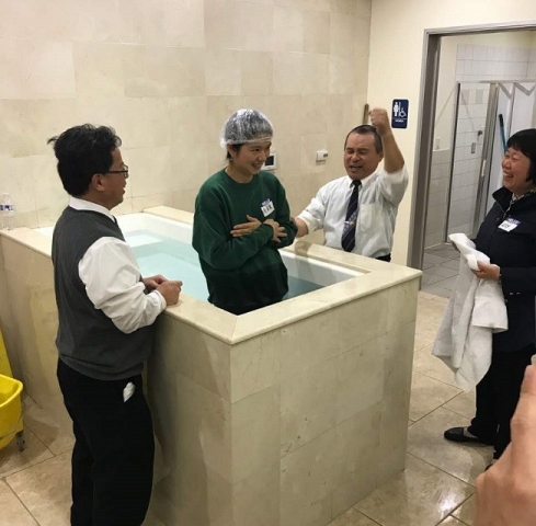 本次聚会与以往不同的是,以前是福音讲座在前,盼望解答福音朋友们的问题,然后呼召受浸,爱宴之后继续借着福音见证及信息来呼召。本次则是以福音诗歌穿插福音见证,因着诗歌唱得好,灵高昂,第一批诗歌见证之后就有十几位受浸,之后每一段的诗歌和见证后都有呼召受浸。如此,圣灵的浪潮一波又一波,在晚上爱宴前就有超过30位新人受浸。每次受浸后,服事者马上把新受浸的圣徒代祷贵宾室和牧养他们的圣徒立约操练家中训练。